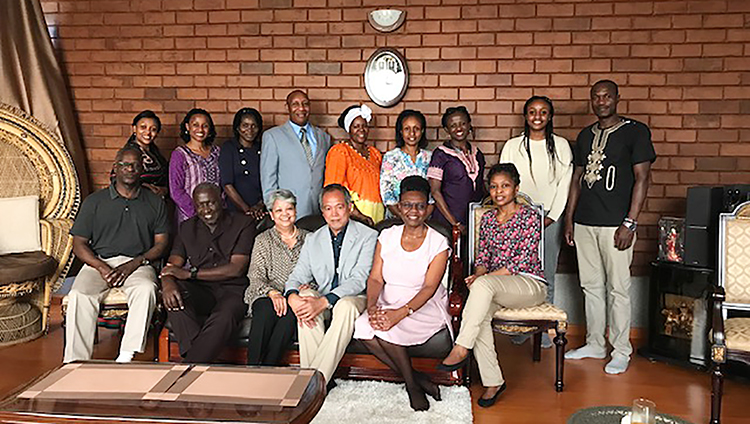 外務省アジア・オーストラレシア局長のリンジー・キプティネス氏(左端)は、元在京ケニア大使館職員とともにディアズ夫人を迎えた
