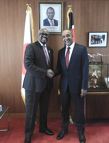 大使館にて、外務省次官マチャリア・カマウ大使とS.Kマイナ大使