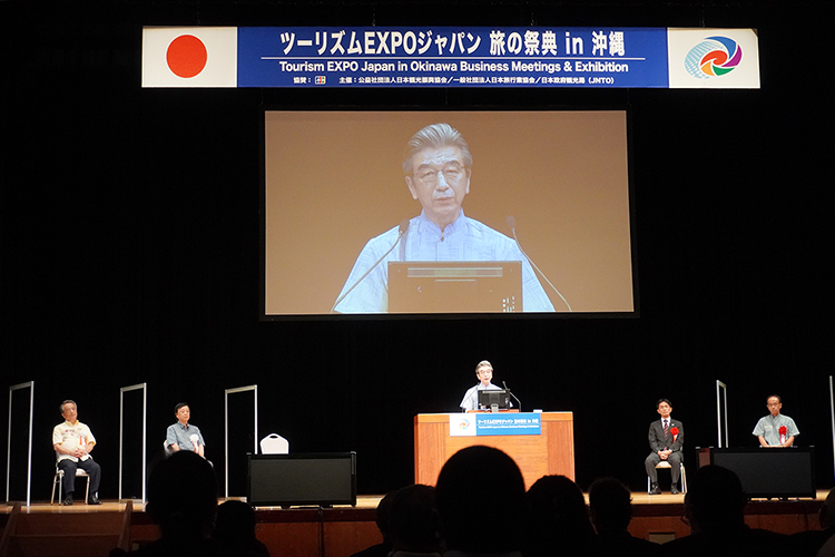 開会式で開会の挨拶をする人日本観光振興協会 山西健一郎会長