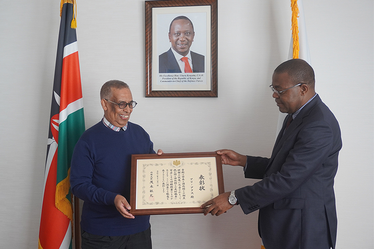 臨時代理大使は、アリ氏の外務大臣表彰受賞を祝福し、日本での語学講師としての経歴を通じて、ケニア文化大使としての功績に感謝の意を表しました。