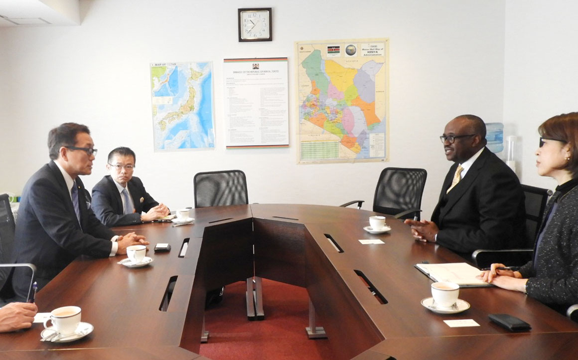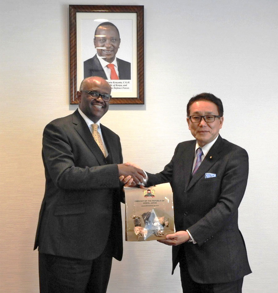 H.E. Amb. S.K. Maina, M.B.S. engages Hon. Kiyoshi Ejima, Member of House of Councillors.