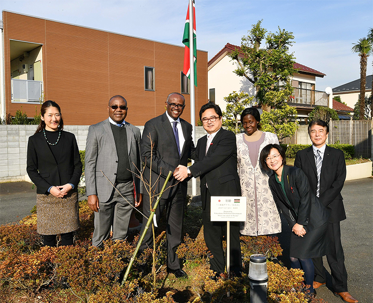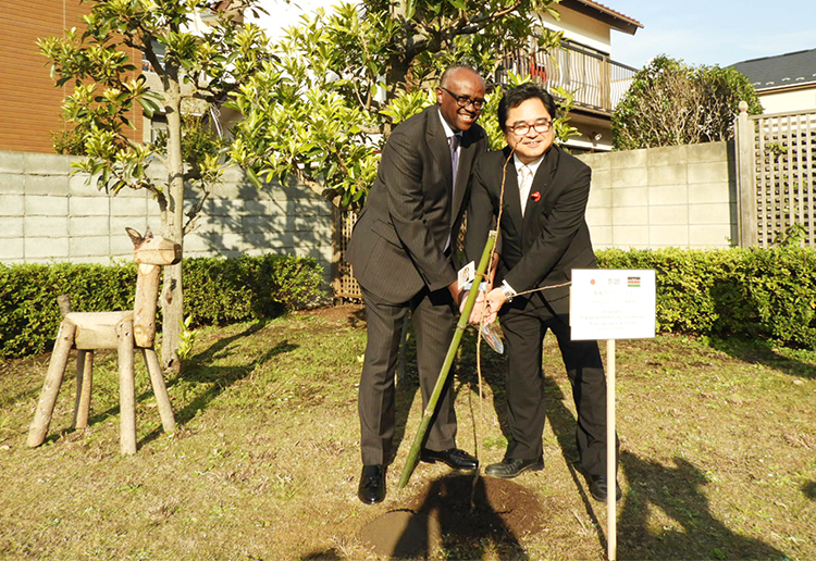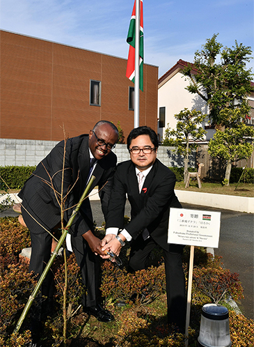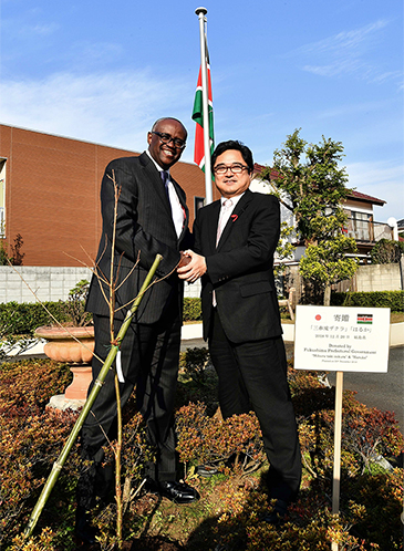 On 20th December 2018, H.E. S K. Maina, MBS together with three senior officials from Fukushima Prefectural Government (Mr. Takahiro Iinuma, Mr. Shuichi Suzuki & Ms. Kaori Fujiwara) planted two Sakura (Cherry Blossom) trees at the Kenya Embassy Grounds. The trees were donated by Hon. Masao Uhibori, Governor of Fukushima Prefecture as a symbol of friendship between Kenya and Fukushima.