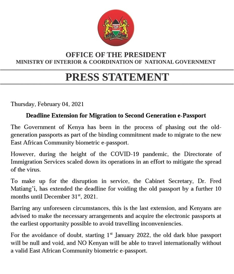DEADLINE EXTENSION FOR MIGRATION TO SECOND GENERATION E-PASSPORT