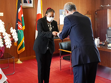 H.E. Amb. Tabu Irina welcomed Mr. Jun Karube, Honorary Consul of the Republic of Kenya in Chubu region and Chairman of Toyota Tsusho Corporation at her office.