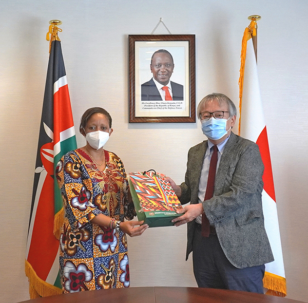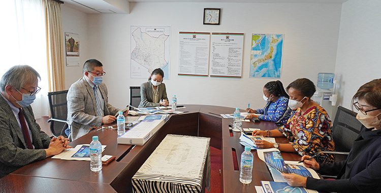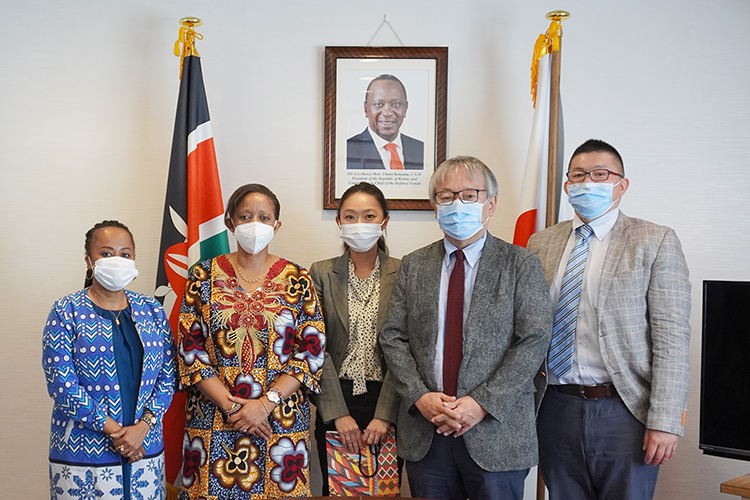 Executives of Toray Medical Co., Ltd. led by Mr. Hidehiko Okubo, Vice President of Medical Devices Division called on H.E. Amb. Tabu Irina on 27th August 2021. Discussions centered on the status of ongoing JICA Project using INOUE-BALOON CATHETER. H.E. the Ambassador conveyed her appreciation to Toray Medical for providing assistance to the development of medical treatment in Kenya. H.E. the Ambassador also assured the Vice President of the Embassy’s full support towards the successful project noting that is mutually beneficial to Kenya and Japan.