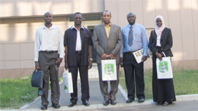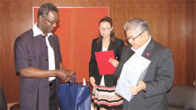 From left to right: Mr. Masani Gomita - Director Office of International Affairs; Prof. Takeo Hondoh-Vice President; Mr. Paul K. Ndung'u-Kenya Embassy; Prof. Hiroshi Saeki-President of Hokkaido University; H.E. Amb. Benson H.O. Ogutu; Prof. Masahiro Okumura-Director of Hokkaido University, Lusaka Office; Mr. John Nduko-Student; Mr. Mathew Kaikai – Kenya Embassy on 26th June, 2012 |
