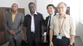 From left to right: Mr. Paul K. Ndung'u; H.E. the Ambassador; Prof. Hirofumi Sawa and Prof. Chihiro Sugimoto at the Research Center for Zoonosis Control, Hokkaido University on 26th June, 2012 |