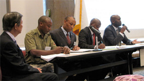 ![]() Prof. Nathaniel Agola, President & CEO of Qweza Inc, making a presentation on Harnessing the Diaspora in Japan for National Development on 22nd September, 2012 | ![]() Participants paying attention during the Panel Session on Harnessing the Diaspora for Education for Development on 22nd September, 2012 |